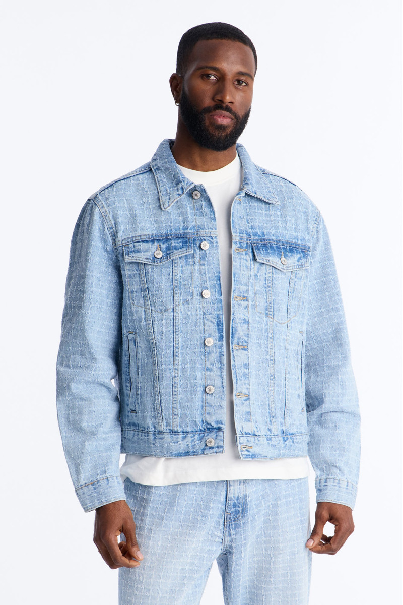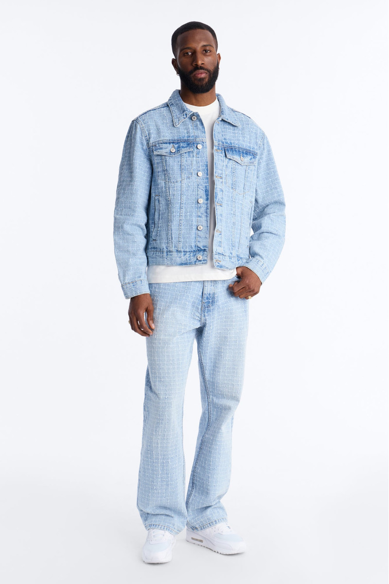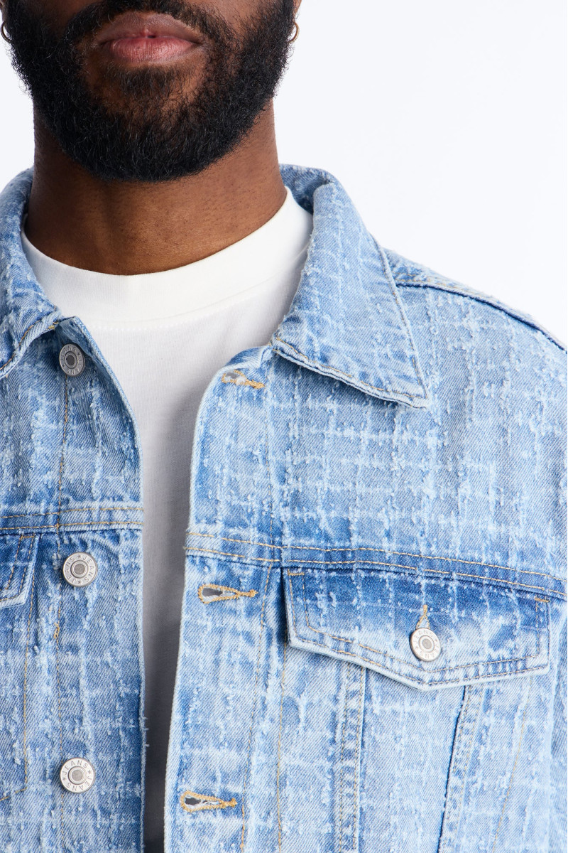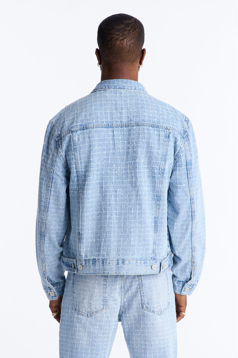 Надайте своєму образу витонченості з цією короткою джинсовою курткою "Windowpane". Дизайн у стилі тракер з візерунком "віконна рама" та ефектом легкого вицвітання додає їй стильного шарму. Ідеально пасує для створення модних багатошарових образів.