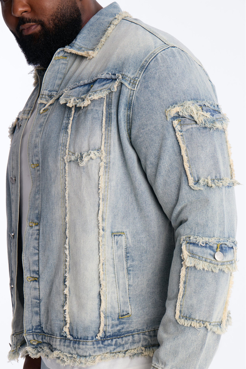 Відкрийте для себе стиль мілітарі з цією джинсовою курткою "Tattered Cargo". Дизайн у стилі тракер доповнений карманами-карго та ефектом легкого вицвітання, що надає їй автентичного вигляду. Чудовий вибір для тих, хто цінує комфорт та практичність.